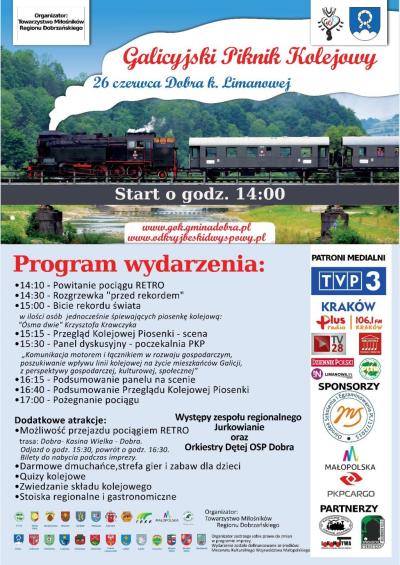 Wydarzenie to zostało zorganizowane w ramach projektu „Galicyjski Piknik Kolejowy w Dobrej” dofinansowanego ze środków Mecenat Kulturalny z Urzędu Marszałkowskiego Województwa Małopolskiego.