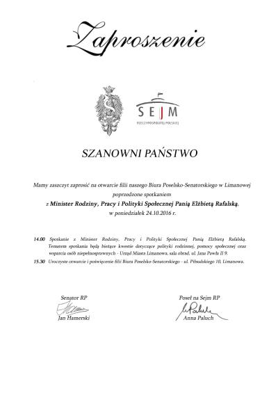 Zaproszenie na spotkanie z Panią Minister Rodziny, Pracy i Polityki Społecznej 21.10.2016 14:58 Treść Facebook Twitter Email Drukuj