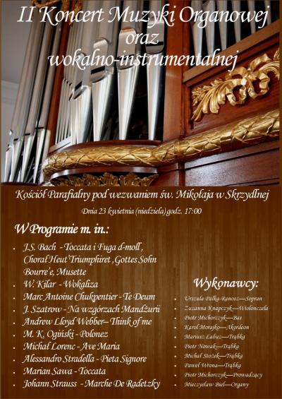 II Koncert Muzyki Organowej oraz wokalno-instrumentalnej 18.04.2017 10:03 Treść Zapraszamy na II Koncert Muzyki Organowej oraz wokalno-instrumentalnej. 23 kwietnia godź. 17:00 w Kosciele Parafialnym pw. św. Mikołaja w Skrzydlnej. Facebook Twitter Email Drukuj