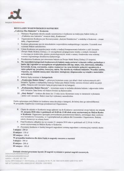 Zaproszenie do konkursu "Cudowna moc bukietów" 03.08.2018 12:43 Treść Instytut Dziedzictwa Narodowego ogłasza konkurs na Bukiety Zielne na święto Wniebowzięcia Najświętszej Maryi Panny. Szczegóły oraz regulamin konkursu znajdują się w załącznikach Facebook Twitter Email Drukuj