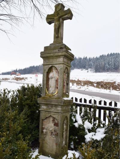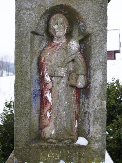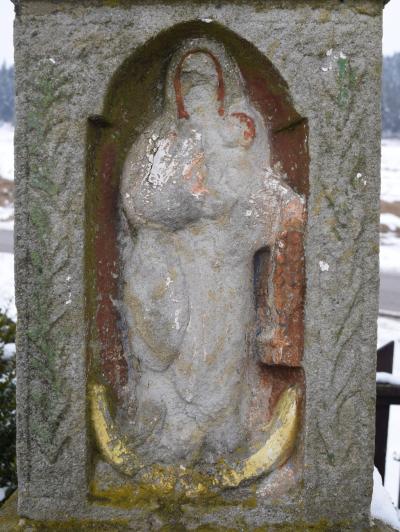 Kapliczka ma formę słupową i znajdowała się w bardzo złym stanie, przede wszystkim sześciu płycin z płaskorzeźbami, których stan był katastrofalny. Poprzez brak odpowiedniego podłoża uległa stopniowemu odchyleniu względem osi pionowej. Ogromnym problemem była również dezintegracja ziarnista piaskowca na całej powierzchni kapliczki, połączona z jego segmentacyjnym rozwarstwianiem się.
