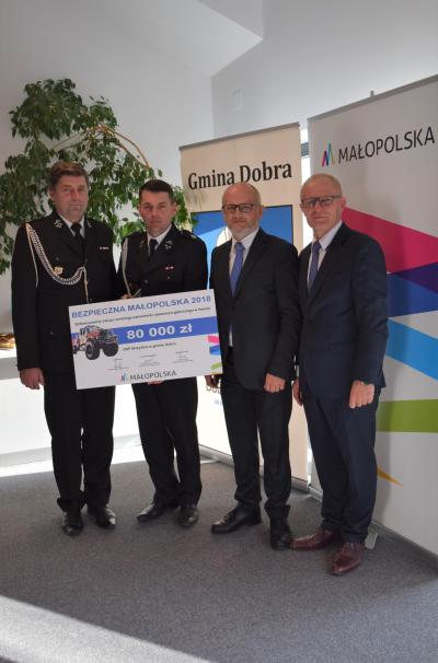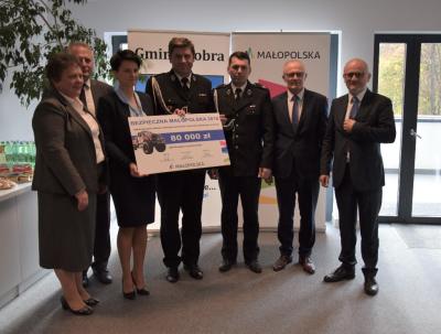 Podczas sesji nastąpiło oficjalne przekazanie dotacji na dofinansowanie zakupu nowego samochodu ratowniczo – gaśniczego dla Jednostki OSP w Skrzydlnej. Przyznaną przez Województwo Małopolskie dotację w kwocie 80 000,00 zł na ręce Prezesa OSP Skrzydlna pana Jana Smagi przekazali pani Urszula Nowogórska wraz z panem Grzegorzem Biedroniem.