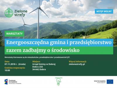 Urząd Gminy w Dobrej oraz Stowarzyszenie ideaTECH zaprasza mieszkańców, przedstawicieli małopolskich gmin, organizacji pozarządowych, a także przedsiębiorców do udziału w Warsztatach szkoleniowych pn. Energooszczędna gmina i przedsiębiorstwo – razem zadbajmy o środowisko.