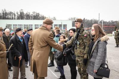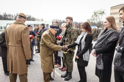 Przemawiający w imieniu „terytorialsów” składających przysięgę szer. Paweł GODZIK podkreślił osadzoną w historycznej tradycji ideową tożsamość najnowszego rodzaju Sił Zbrojnych, oddając hołd kombatantom: „Gorące podziękowania i wyrazy najgłębszego szacunku dla żołnierzy Armii Krajowej i członków Polskiego Państwa Podziemnego oraz powojennych organizacji niepodległościowych, pragnę w imieniu nas wszystkich złożyć na ręce naszych dostojnych Gości – weteranów Armii Krajowej. Zobowiązujemy się kontynuować Waszą misję i przekazywać Wasze przesłanie kolejnym pokoleniom.”
