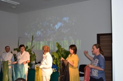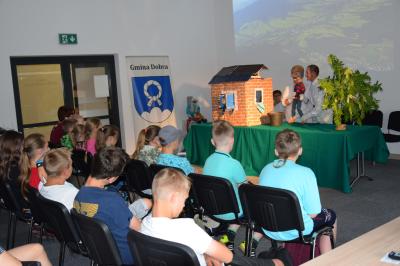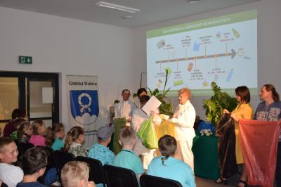 Podczas pierwszej części spotkania odbył się spektakl pt. „Teatralna lekcja ekologii”, w którym wystąpiły osoby działające w dziennym Domu Seniora w Dobrej. To spektakl, który powstał dzięki projektowi „Stwórz lalkę – stwórz siebie! Teatr dla społecznej integracji” zawierający wiele informacji na temat ekologii i ochrony środowiska.