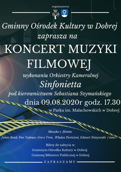 Gminny Ośrodek Kultury w Dobrej serdecznie zaprasza na KONCERT MUZYKI FILMOWEJ, który odbędzie się dnia 9 sierpnia w Parku Małachowskich w Dobrej o godz. 17.30