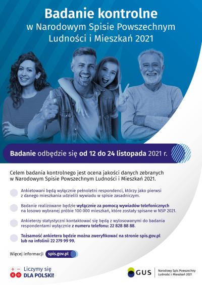 Badanie kontrolne w Narodowym Spisie Powszechnym Ludności i Mieszkań 2021 - 12-24 listopada 2021 r.