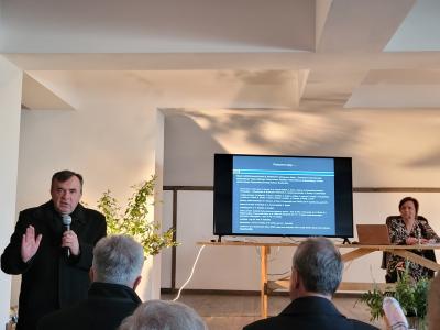 Dr Anna Forczek – Sajdak jest adiunktem na Wydziale Konserwacji i Restauracji Dzieł Sztuki krakowskiej Akademii Sztuk Pięknych. Od ponad 10 lat nadzoruje prace konserwatorskie prowadzone przy kościele św. Mikołaja Biskupa w Skrzydlnej. W takcie wykładu została przedstawiona historia kościoła w Skrzydlnej oraz nowe, niepotwierdzone jeszcze odkrycia, które wskazują, że najprawdopodobniej kościół w Skrzydlnej jest o wiele starszy niż datują obecne źródła historyczne. Wykład cieszył się ogromnym zainteresowaniem, nie tylko parafian ale również historyków, regionalistów, a także mediów: m. in. przedstawicieli Gościa Niedzielnego czy telewizji tv28. Po wykładzie trwała ciekawa dyskusja, z której wyłoniła się troska ogółu co do konieczności zgłębienia badań i dokończenia trwającej konserwacji zabytku.