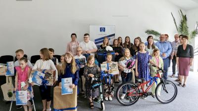 Nagrody wręczył Przewodniczący Rady Gminy Dobra – Jan Palki wspólnie z Dyrektorami Szkół Podstawowych z terenu Gminy Dobra.