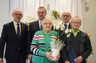 Były życzenia, kwiaty, listy gratulacyjne, wspólny toast oraz gromkie sto lat. Przedstawiciele Samorządu złożyli Dostojnym Jubilatom serdeczne życzenia zdrowia, szczęścia, pomyślności oraz samych radosnych chwil i wytrwałości na dalsze wspólne lata.