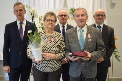 Dostojnymi Jubilatami odznaczonymi medalami za długoletnie pożycie małżeńskie byli: