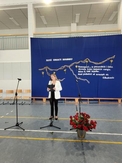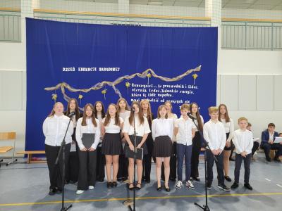 Uroczystość uświetnił artystyczny występ uczniów z Zespołu Placówek Oświatowych w Skrzydlnej, którzy zaprezentowali zgromadzonym montaż słowno-muzyczny.
