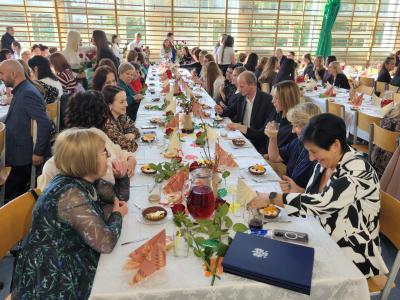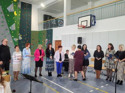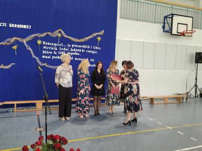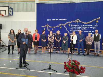 W poniedziałek 14 października 2024 roku w Szkole Podstawowej w Dobrej odbyły się coroczne gminne obchody Dnia Edukacji Narodowej. W tym roku organizację wydarzenia powierzono Zespołowi Placówek Oświatowych w Skrzydlnej pod przewodnictwem Pani Dyrektor Doroty Olesiak. Obchody zgromadziły obecnych i emerytowanych nauczycieli oraz pracowników administracyjno-obsługowych ze szkół i przedszkoli z terenu Gminy Dobra. Wśród zaproszonych gości znaleźli się także Radni Rady Gminy Dobra z Przewodniczącym Janem Palki, Wójt z pracownikami Zespołu Obsługi Szkół i Przedszkoli oraz Radna Powiatu Limanowskiego Grażyna Gocal.