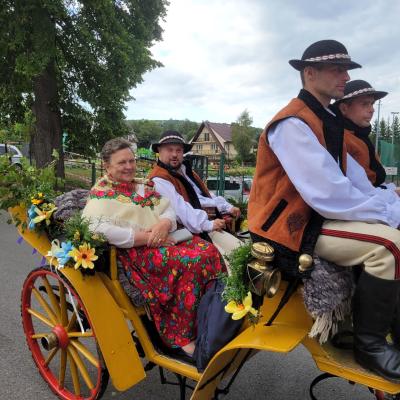 - Dziękujemy sołectwu Chyszówki za nieoceniony wkład w organizację zaprzęgów konnych oraz przygotowanie chleba dożynkowego.