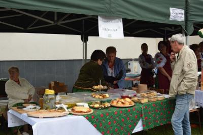 Podczas całej imprezy nie brakowało lokalnych smaków. Stoiska Kół Gospodyń Wiejskich z Porąbki, Skrzydlnej, Przenoszy, Dobrej, Woli Skrzydlańskiej, Stróży oraz Gruszowca oferowały pierogi, gołąbki, ciasta, kołacze, chleb ze smalcem, lemoniadę, rękodzieło i wiele innych. Dużym powodzeniem cieszyła się foto-budka dożynkowa przygotowana przez sołectwo Gruszowiec.