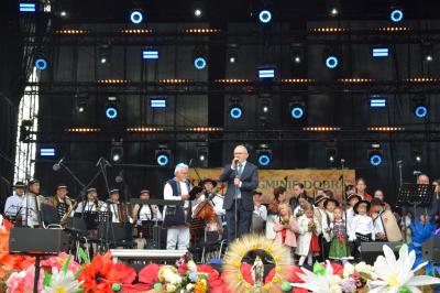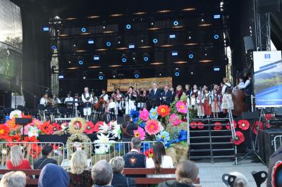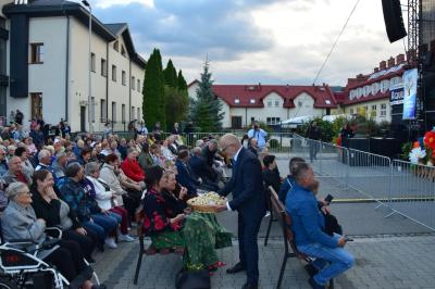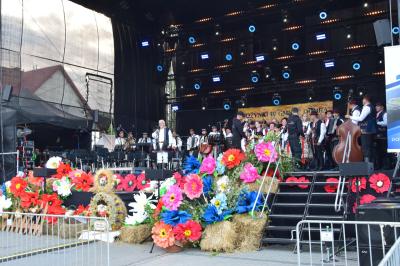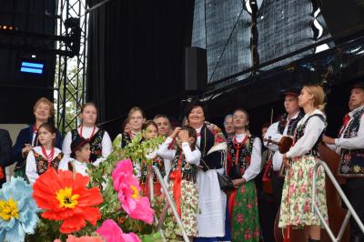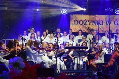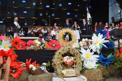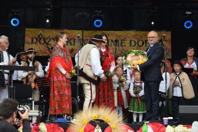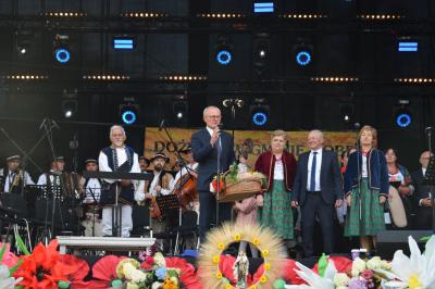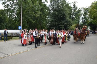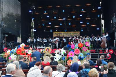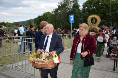 Podczas ceremonii, dożynkowe pieśni grane przez zespoły „Skrzydlan” i „Madejów” wprowadziły zebranych w atmosferę wspólnego świętowania.
