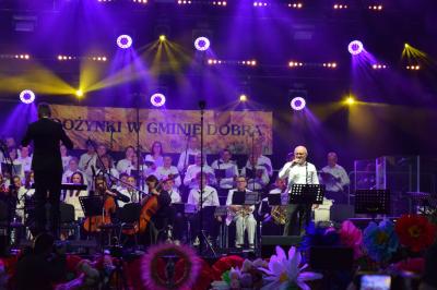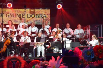 O godzinie 19:30 przyszła pora na wyjątkowy punkt wieczoru – koncert „Powrót do Dobrej”. Był to moment, na który czekali wszyscy. To niezwykłe wydarzenie muzyczne połączyło lokalnych artystów z profesjonalistami, tworząc niezapomnianą atmosferę wspólnoty i więzi z tradycją. Tytuł koncertu – „Powrót do Dobrej” – stał się metaforą tego, co w sercach mieszkańców gminy jest najważniejsze: powrotu do korzeni, do własnej tożsamości, historii i tradycji.