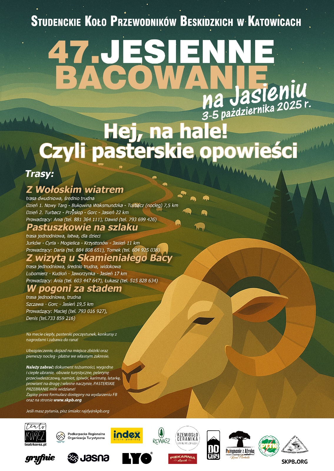 W imieniu Studenckiego Koła Przewodników Beskidzkich w Katowicach serdecznie zapraszam na 47. Jesienne Bacowanie na Jasieniu, które odbędzie się w dniach 3–5 października 2025 roku.