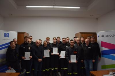 Gmina Dobra na postawie Uchwały Nr XVIII/244/25 Sejmiku Województwa Małopolskiego z dnia 26 maja 2025 roku oraz Uchwały Zarządu Województwa Małopolskiego Nr 1332/25 z dnia 3 czerwca 2025 roku uzyskała dofinansowanie z budżetu Województwa Małopolskiego w formie dotacji celowej za przeznaczeniem dla jednostek Ochotnivzych Straży Pożarnych z terenu województwa małopolskiego w ramach naboru "Szkolenie KPP dla każdej Jednostki OSP 2025"