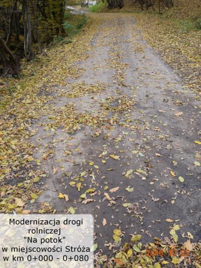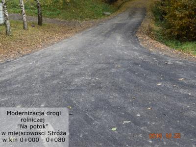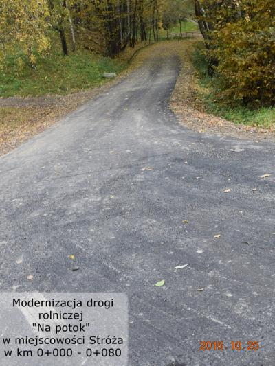 Remont drogi rolniczej "Na Potok" Treść Zdjęcia powykonawcze z inwestycji: "Modernizacja drogi roliczej "Na Potok" w miejscowości Stróża w km 0+000 - 0+080" Facebook Twitter Email Drukuj