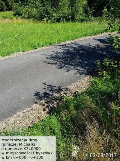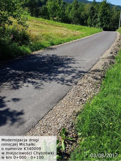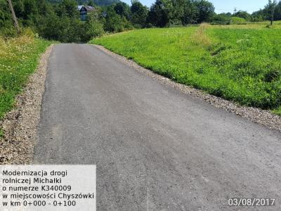 Modernizacja drogi rolniczej "Michałki" Treść Zdjęcia powykonawcze z inwestycji: "Modernizacja drogi rolniczej "Michałki" w miejscowości Chyszówki w km 0+000 - 0+100" Facebook Twitter Email Drukuj